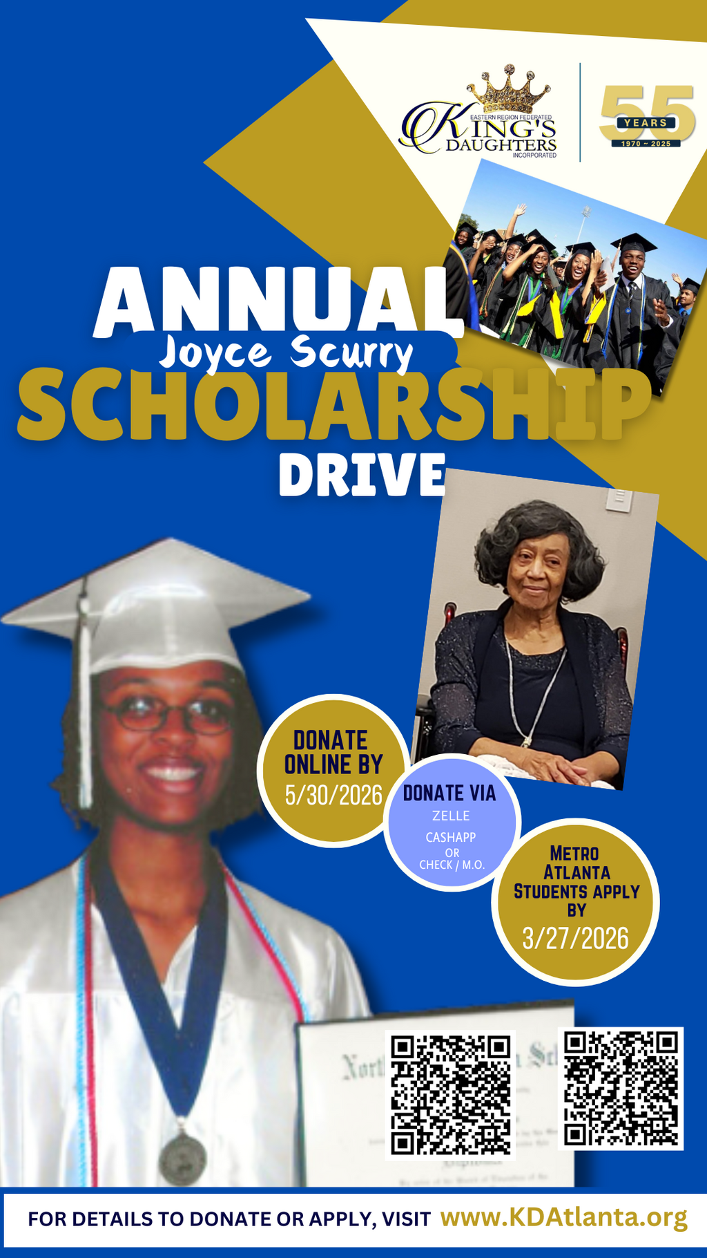 This year, in honor of our beloved member and highest fundraiser, we have renamed our scholarship program the Joyce Scurry Annual Scholarship.
